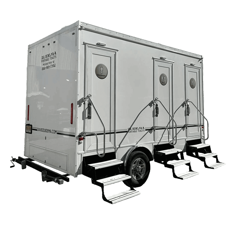 Our restroom trailers serve not only as a practical necessity but also elevate the overall experience of guests, workers, or attendees, ensuring their focus remains on the event or task at hand rather than the discomfort of inadequate facilities. All of our ADA-compliant trailers have private stalls equipped with running water, hot water heaters, AC, heating, and surround sound stereo. We have quality restroom trailers available at Zuidema Septic Services & Portable Toilets: