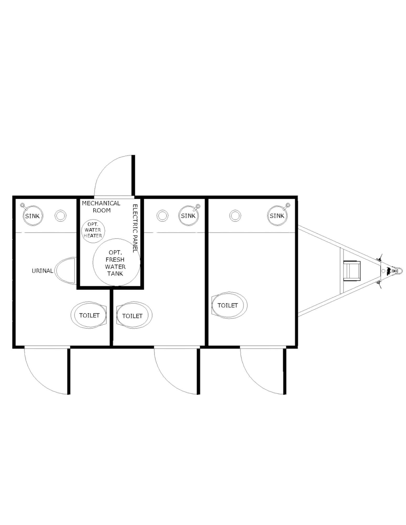 - Spacious Design: Each trailer features three individual stalls to ensure privacy and reduce wait times.